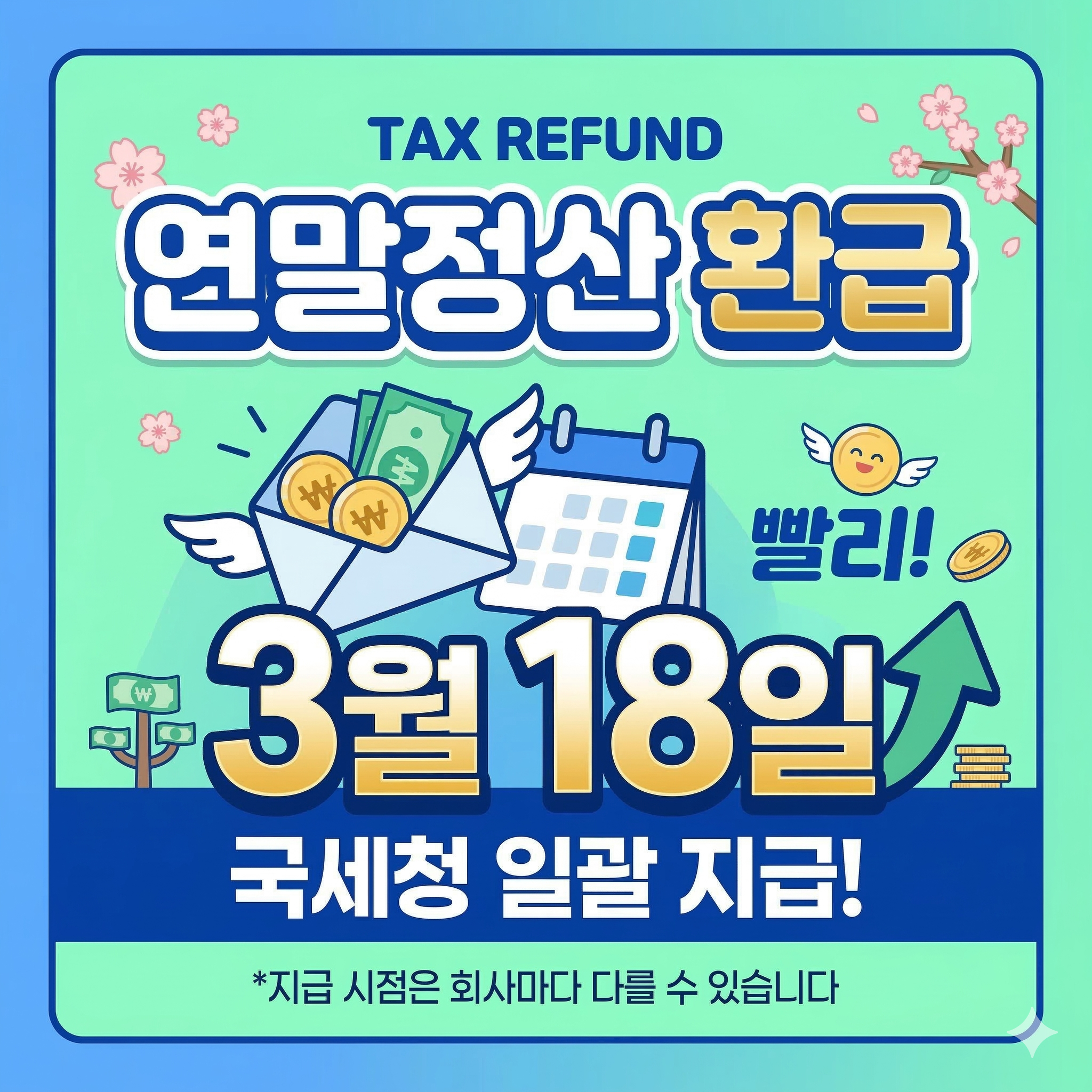 - 3월 18일: 국세청 → 회사로 환급금 일괄 지급 (조기 지급 대상)